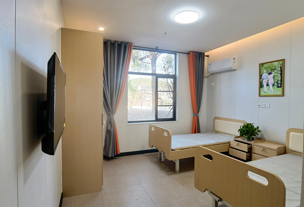 衛(wèi)生間的馬桶配有防護(hù)設(shè)施,能保證長(zhǎng)者的安全,房間其他配套設(shè)施齊全,就像自己的家一樣溫馨。